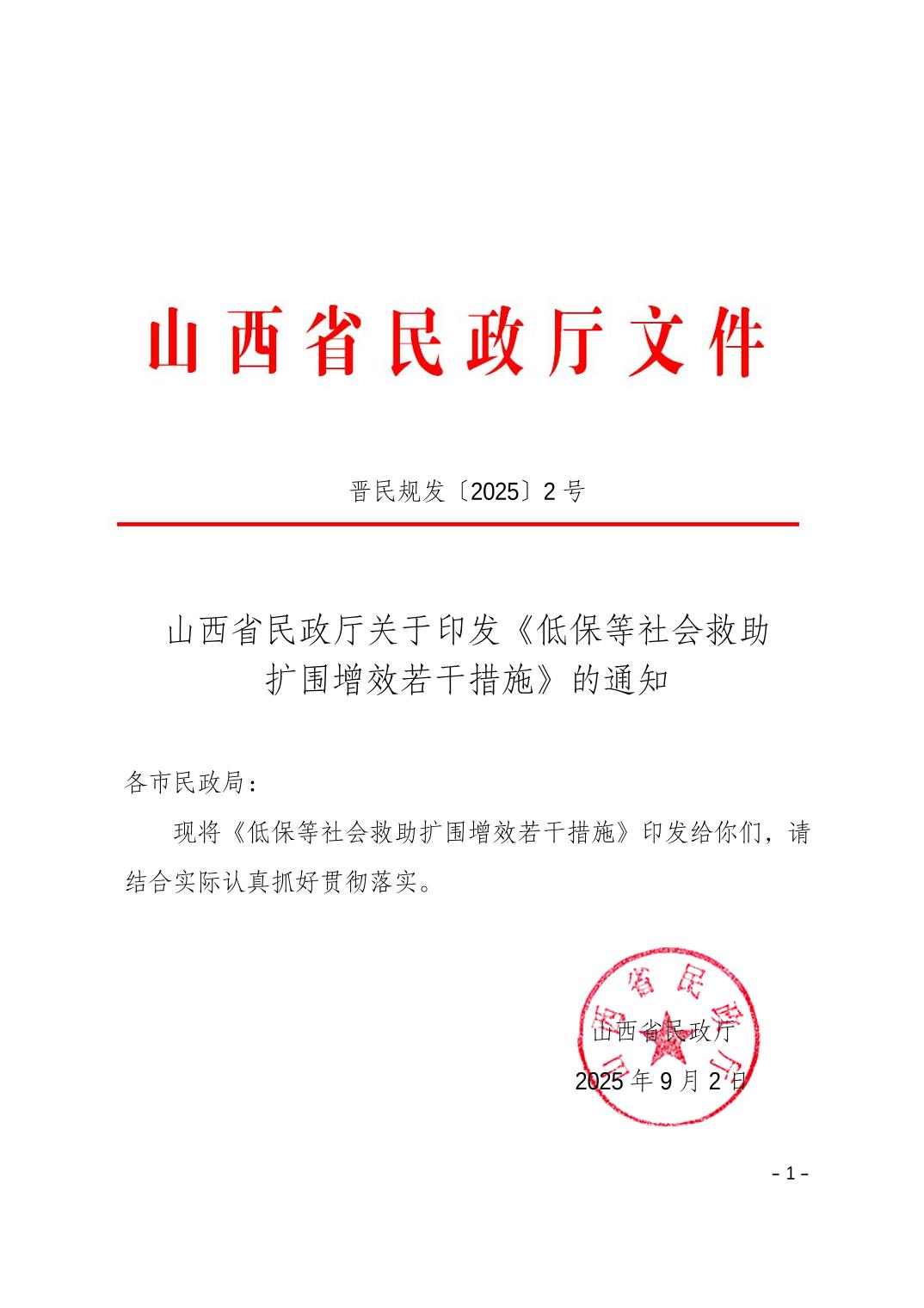 山西省民政厅关于印发《低保等社会救助 扩围增效若干措施》的通知