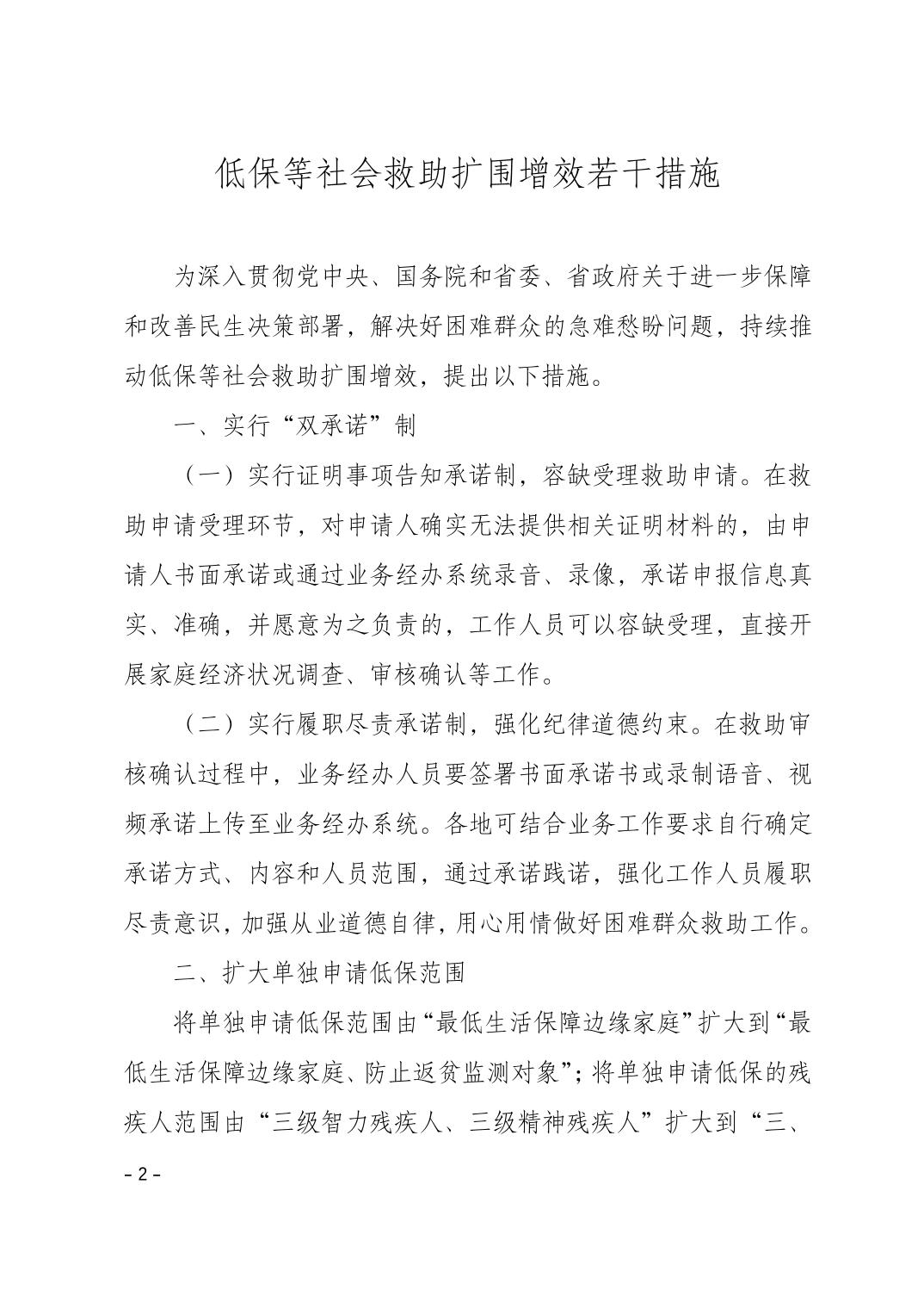 低保等社会救助扩围增效若干措施
