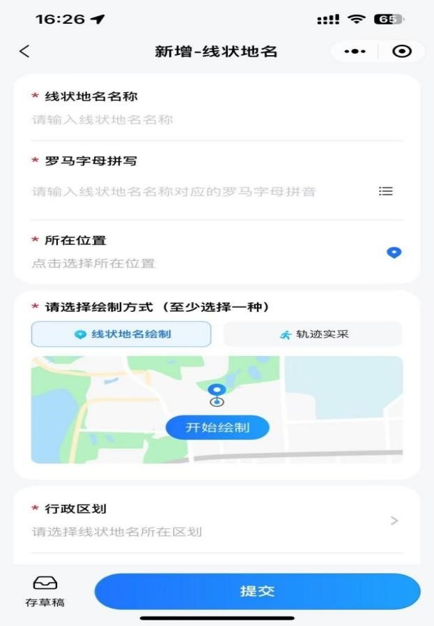 如果新增或报错的是道路等线状地名,请选择“新增-线状地名”或“报错-线状地名”,该功能可绘制线状地名路线,能清晰确定其起止点和走向。
