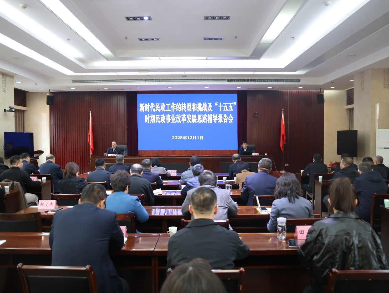 12月1日,省民政厅举办“十五五”规划专题辅导讲座,厅党组书记、厅长李建红主持讲座。民政部培训中心政策理论研究所原所长成海军受邀作《新时代民政工作的转型和挑战及“十五五”时期民政事业改革发展思路》的专题讲座。