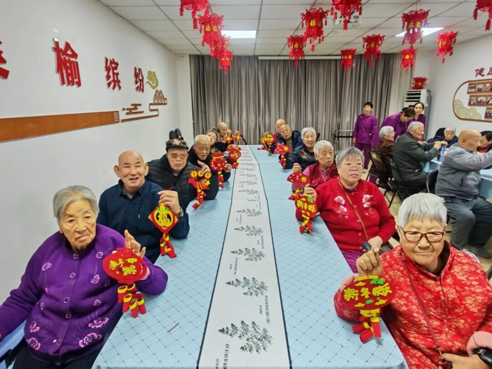 图三·晋中市老年养护院组织老人们开展“新年鞭炮挂饰”手工制作活动