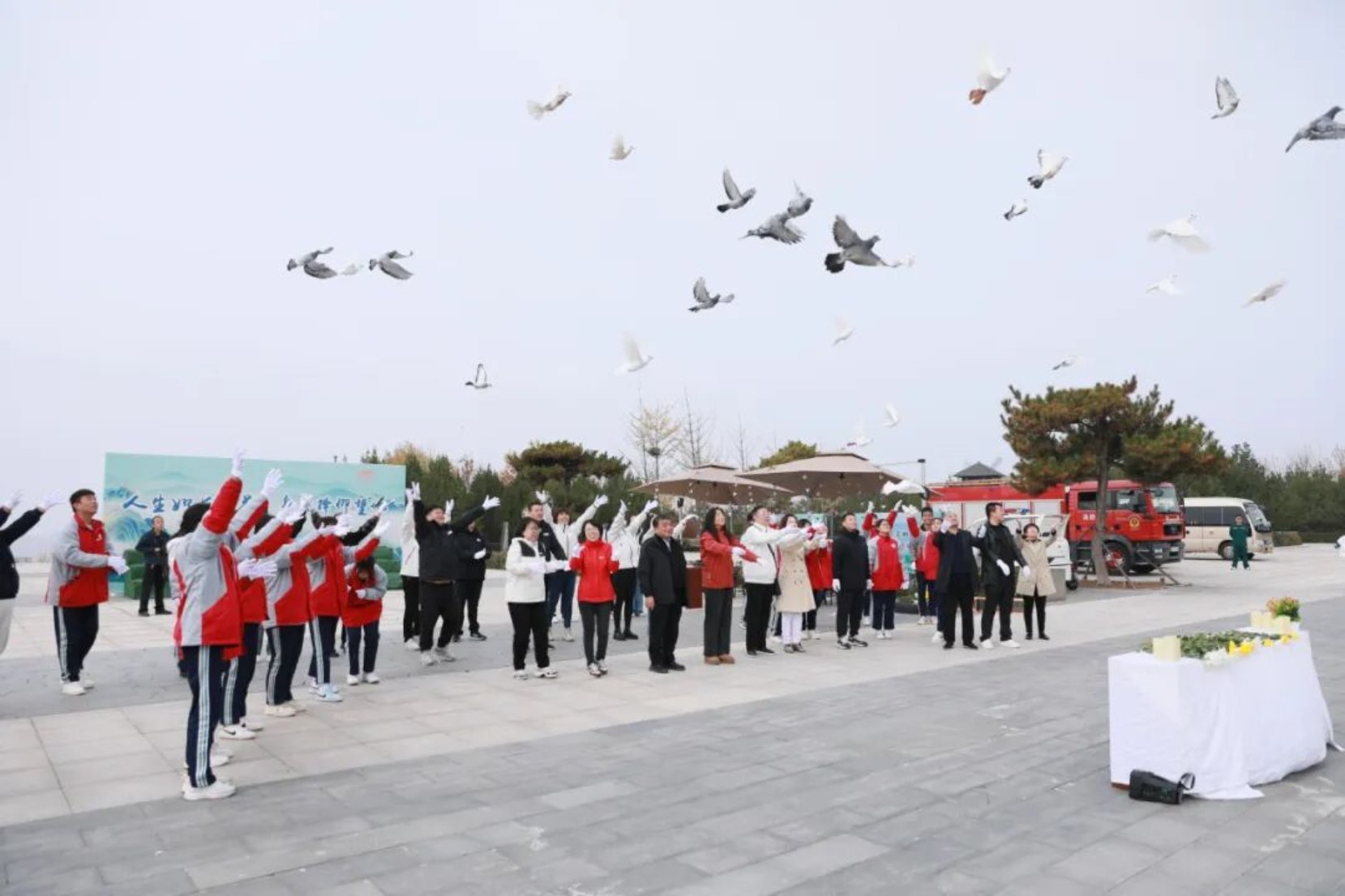 图一·太原双塔革命公墓放飞思念鸽,举行文明祭扫活动